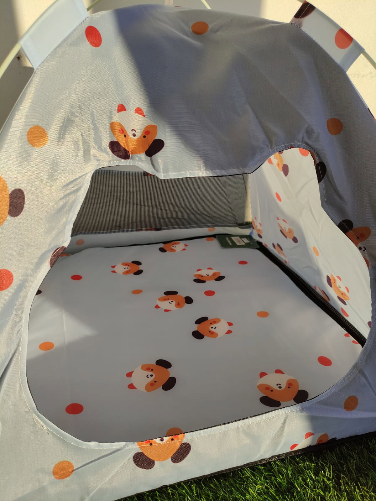 - Diseño practico y portatil: En un encantandor color celeste clarito, esta carpa mide 50x50x2 cm.