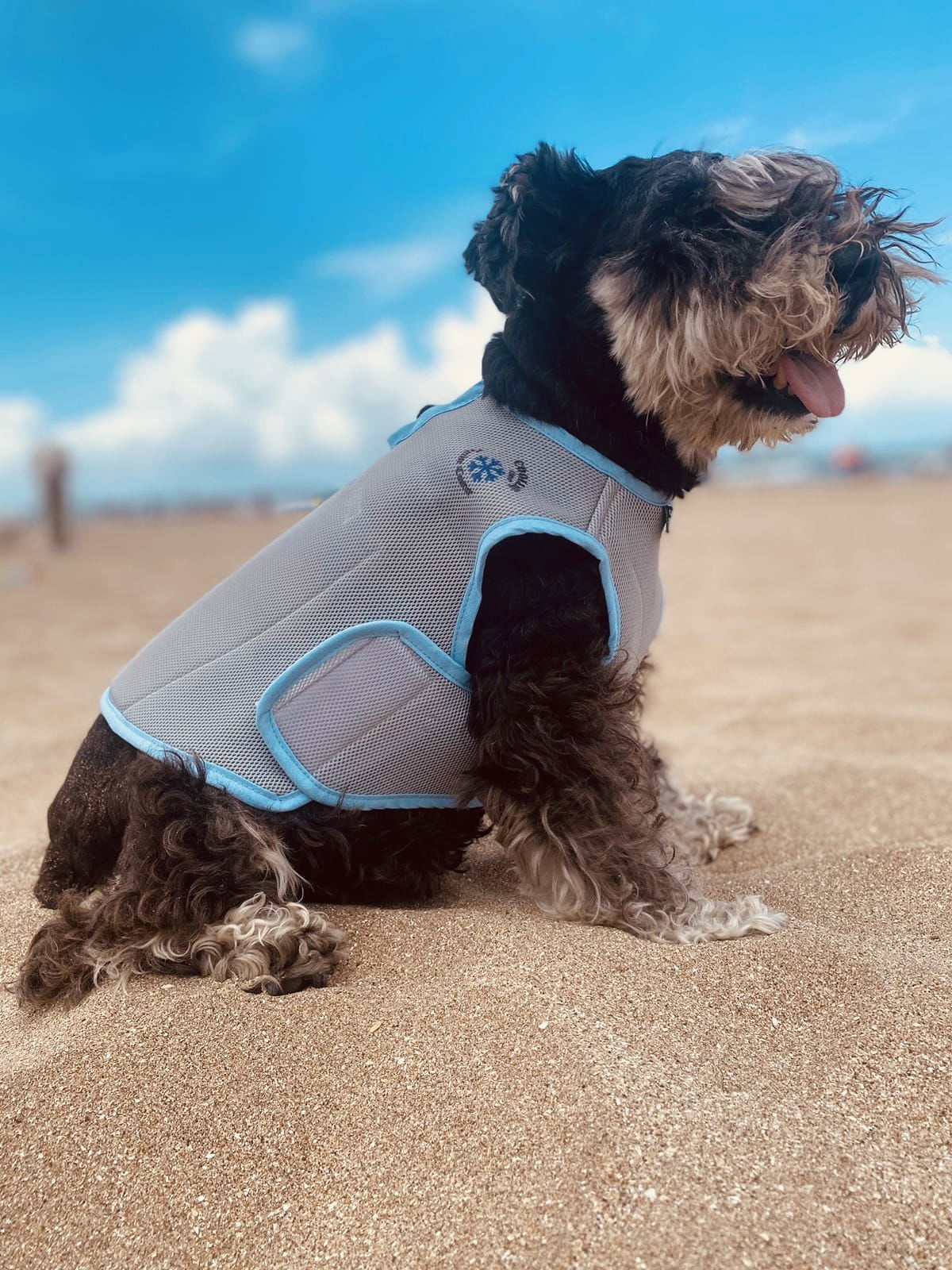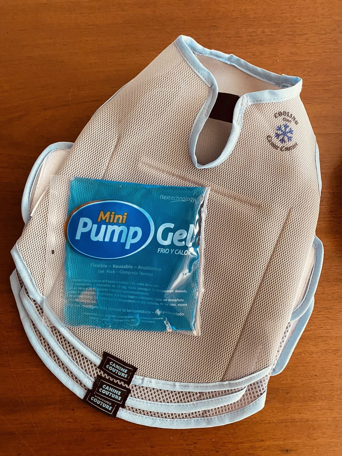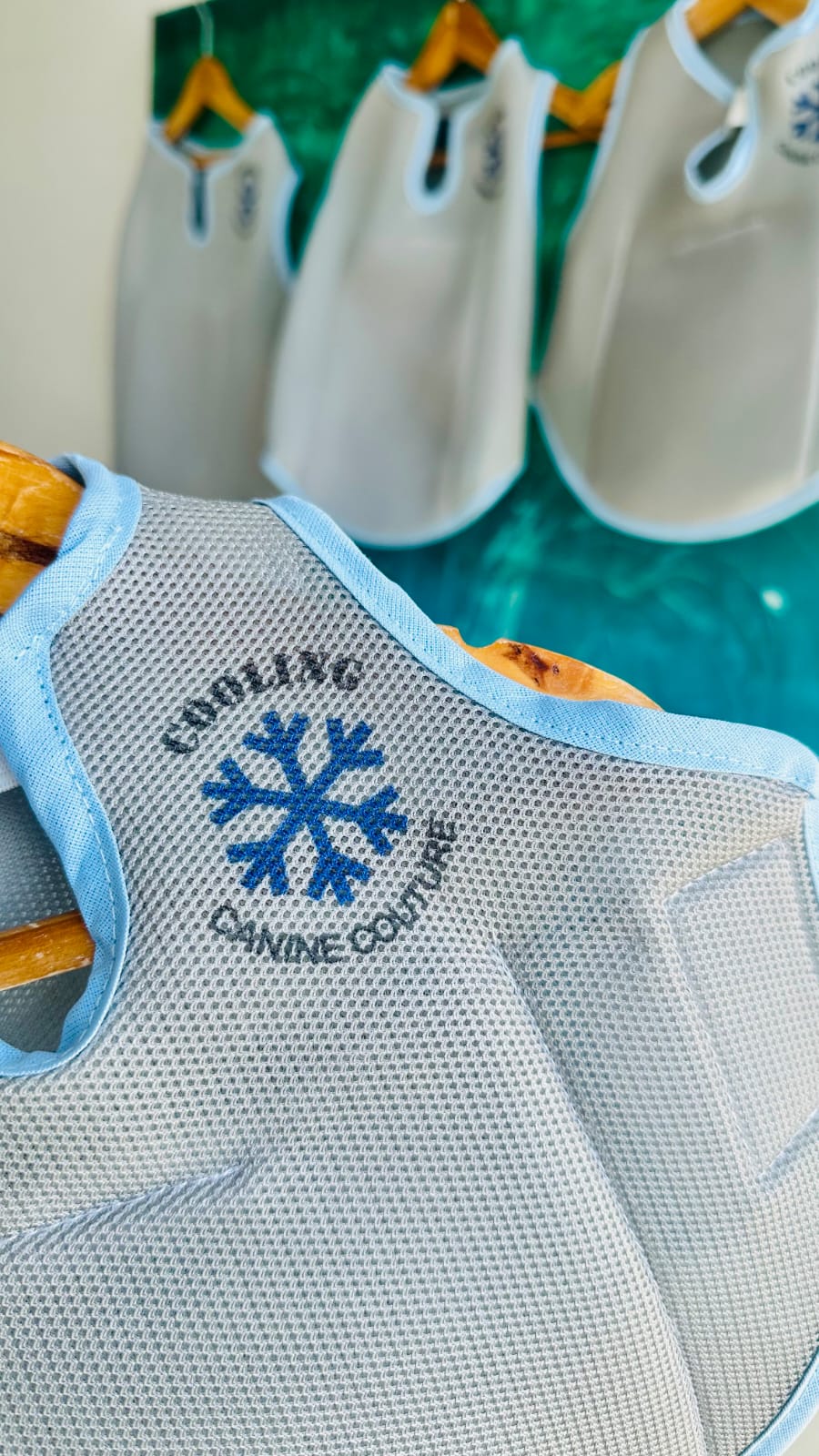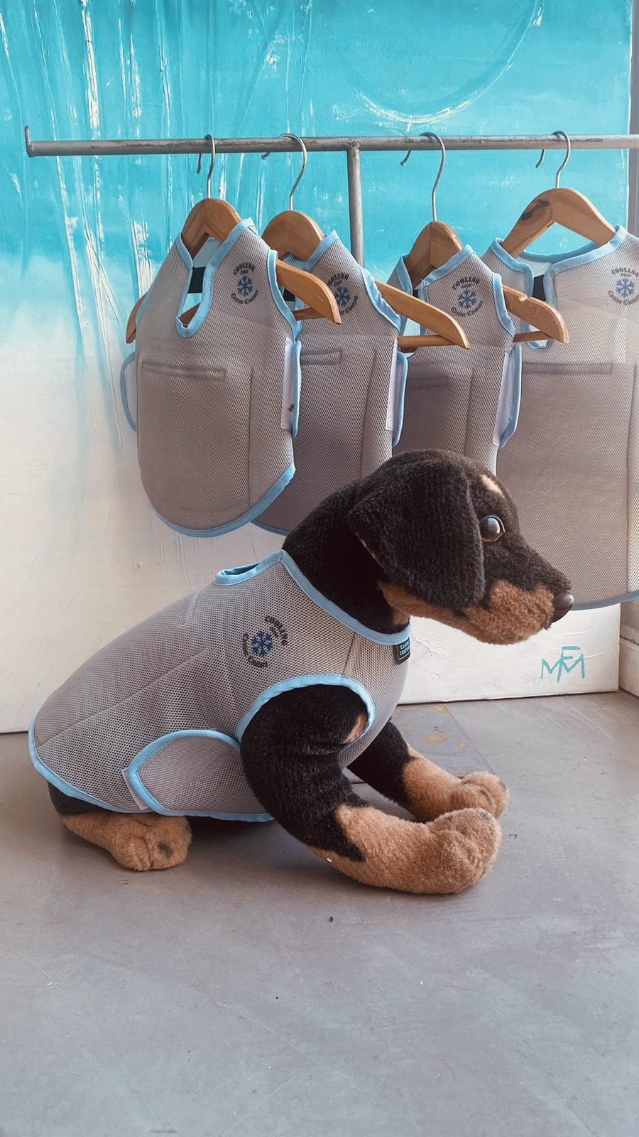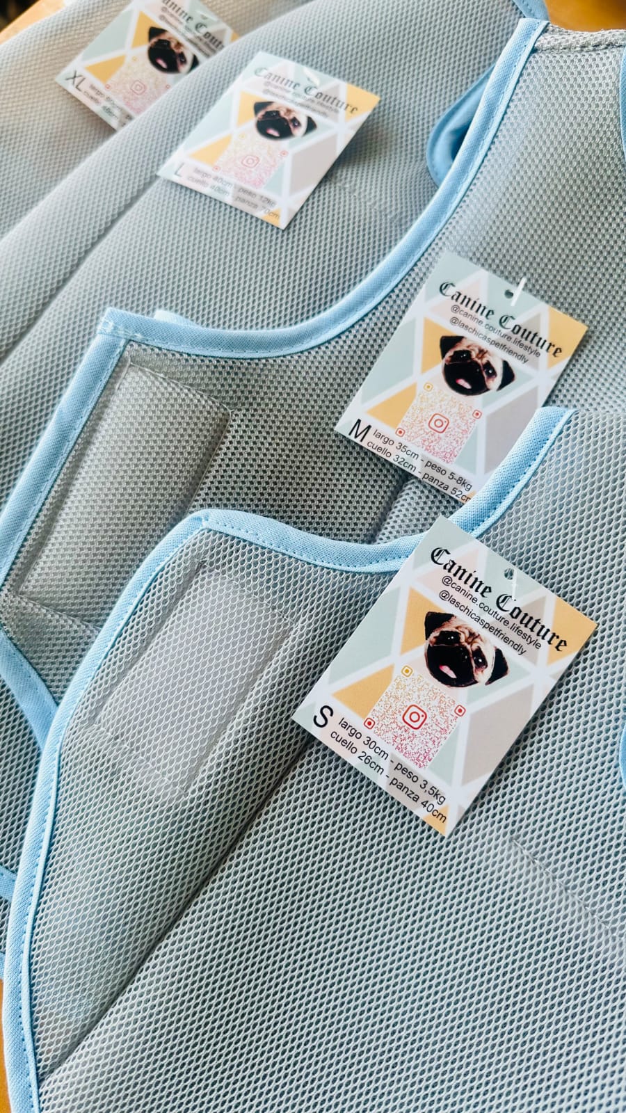 Tela de Malla poliéster de dos capas super liviana y aireada para mojar, escurrir y mantener fresco el cuerpo de la mascota.