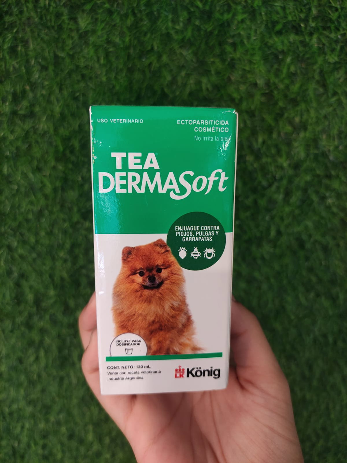 Frasco con medida dosificadora, enjuague pulguicida, garrapaticida y piojicida con propiedades cosméticas para caninos