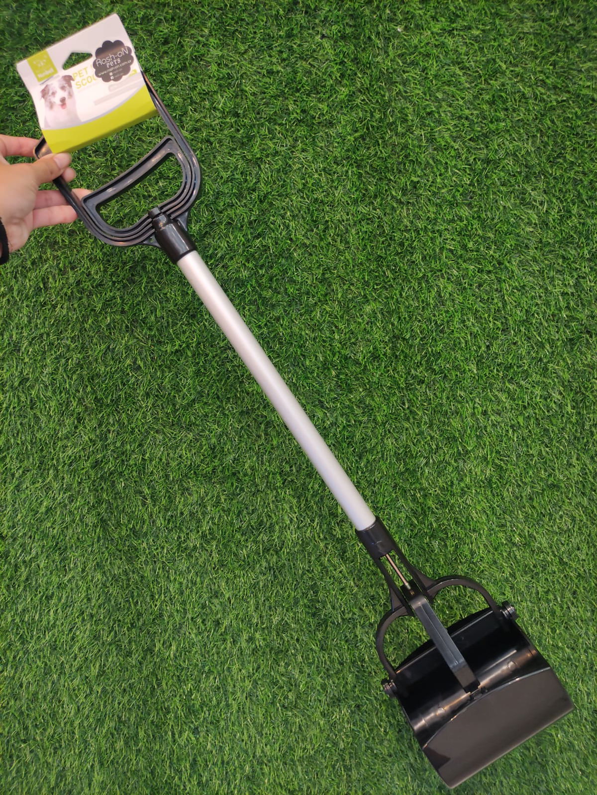 Practica pala para recoger el excremento de mascotas sin necesidad de acercarte demasiado a la caca ni tocarla, gracias al sistema de apertura automática accionado desde el mango