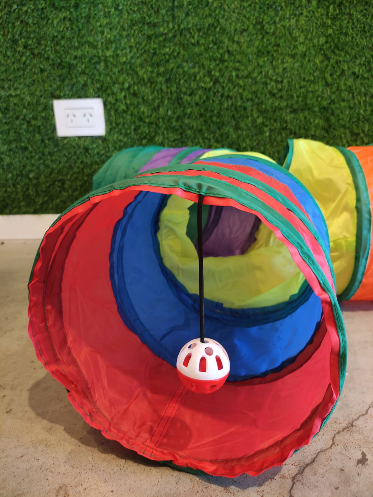 Incluye pelotita. Es ideal para mantener a tus mascotas activas y entretenidas! Con un diseño triple que permite múltiples rutas de exploración, este túnel fomenta el juego interactivo y la curiosidad natural de rus animales