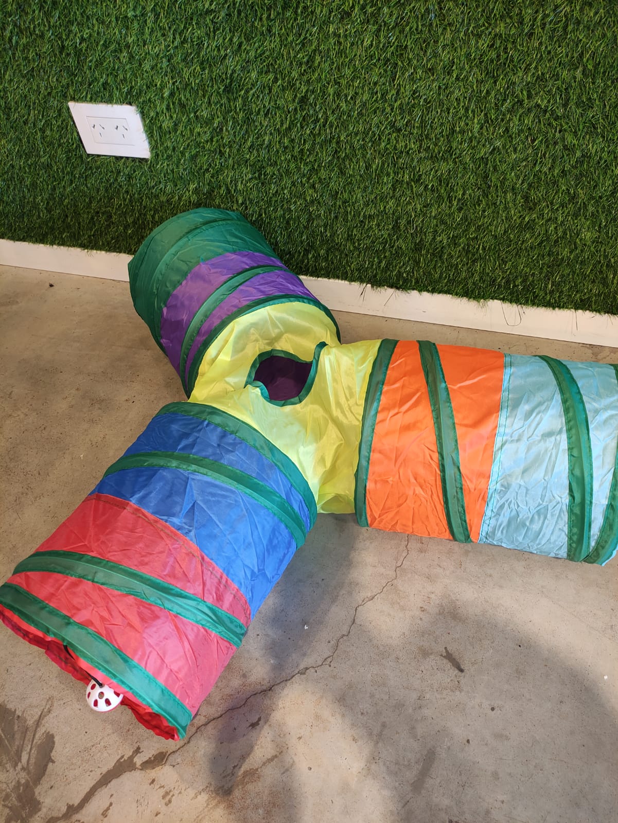 Túnel triple en forma de Y para gatos, conejos y cobayos.