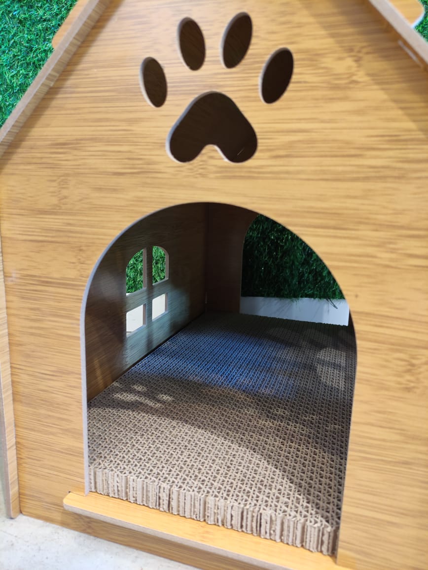 Diseño Multiusos: Esta casa con caja rascadora no solo es una almohadilla rascadora duradera, sino que también es una cama acogedora para que los felinos duerman y se entretengan.