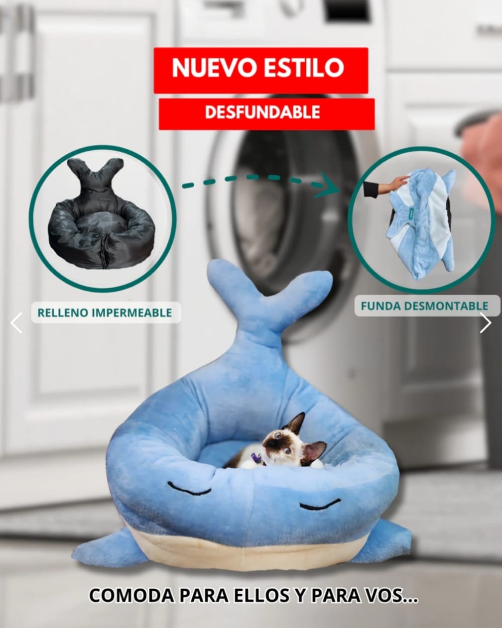 ¿Alguna vez imaginaste a tu mascota durmiendo en alguna ballena? Nuestro diseño de ballena es perfecto para perritos o gatitos que necesiten una camita con respaldo, ya que su colita funciona como espaldar.