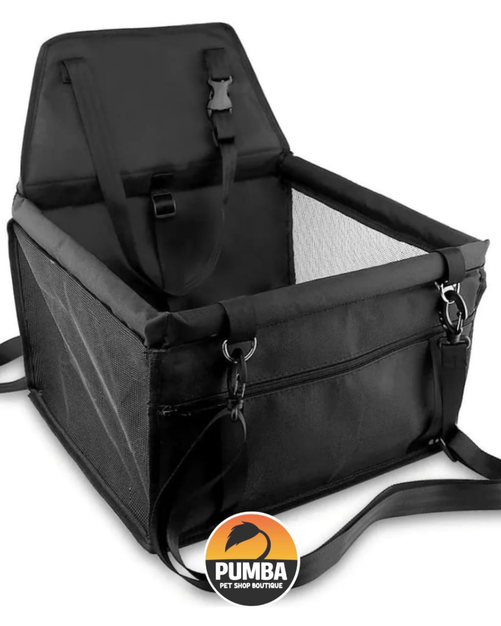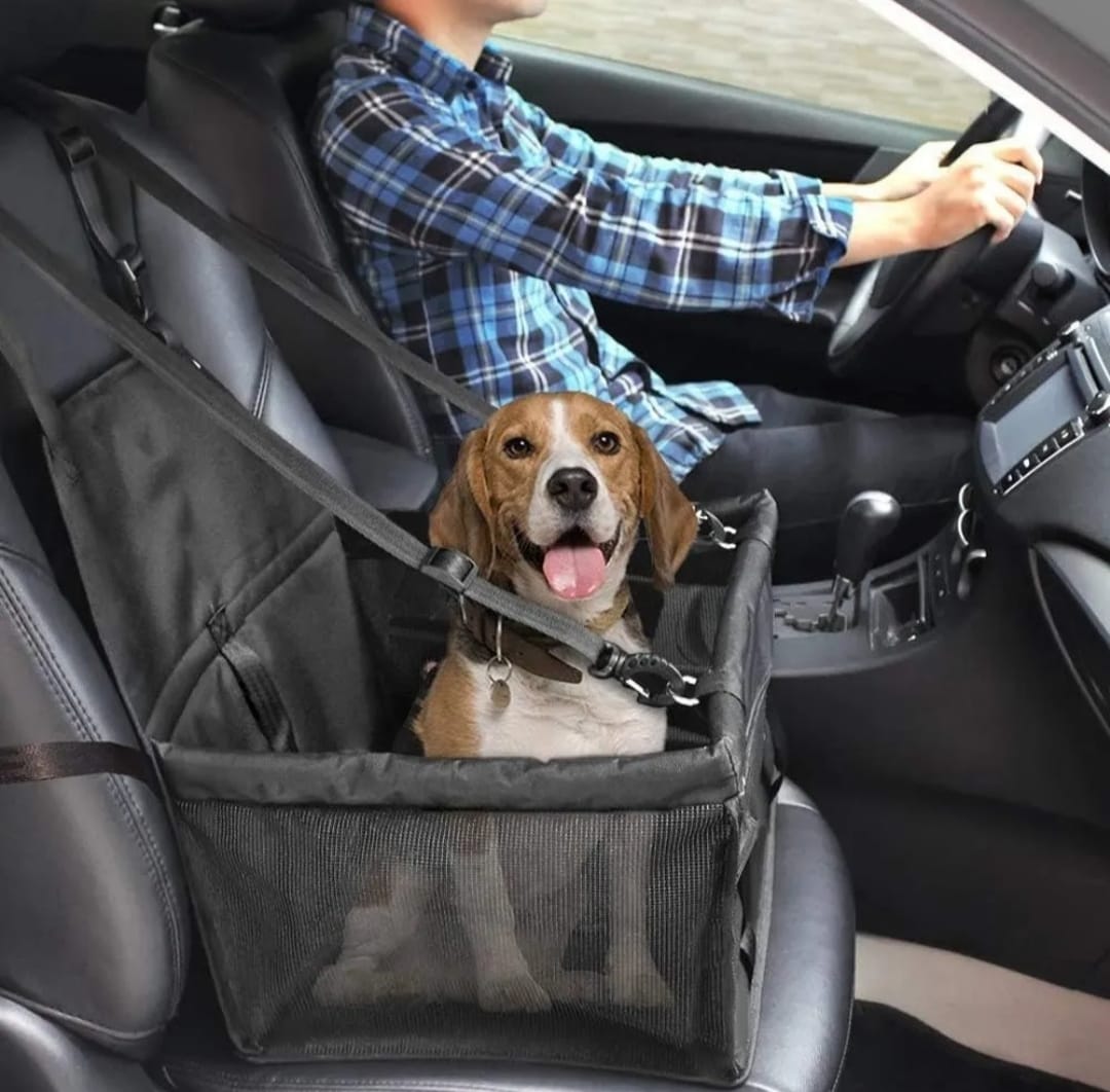 Habitáculo de fácil sujeción a asientos de vehículos para transporte con mascotas, incluye mosquetón.