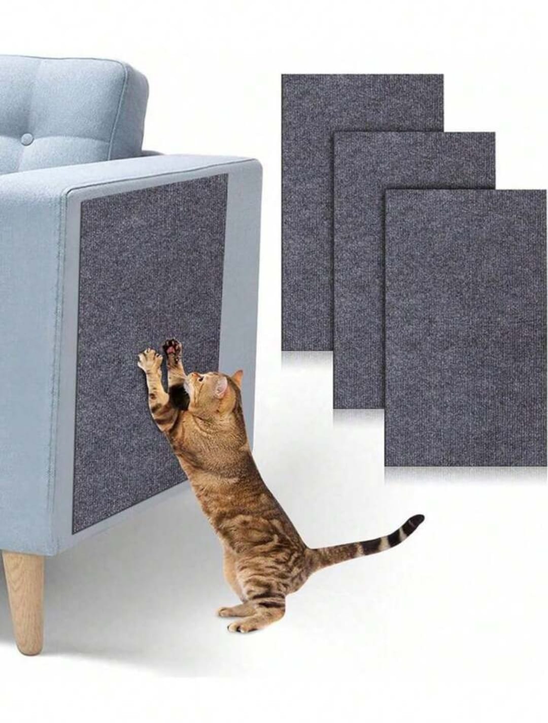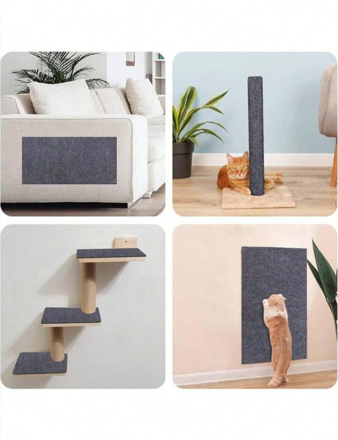 Alfombra adhesiva - rascador para gatos, recortable anti arañazos, viene en color marrón y gris.