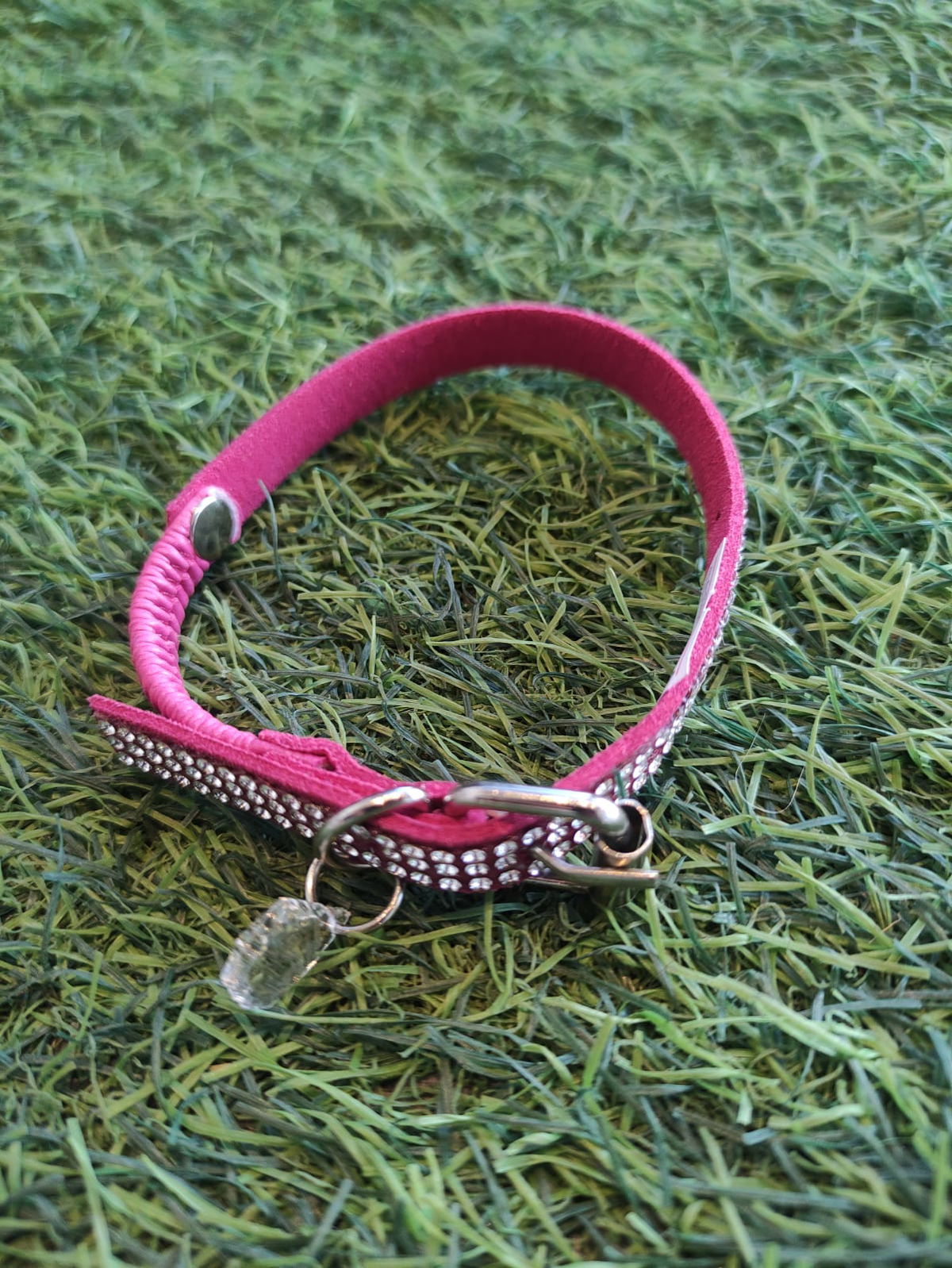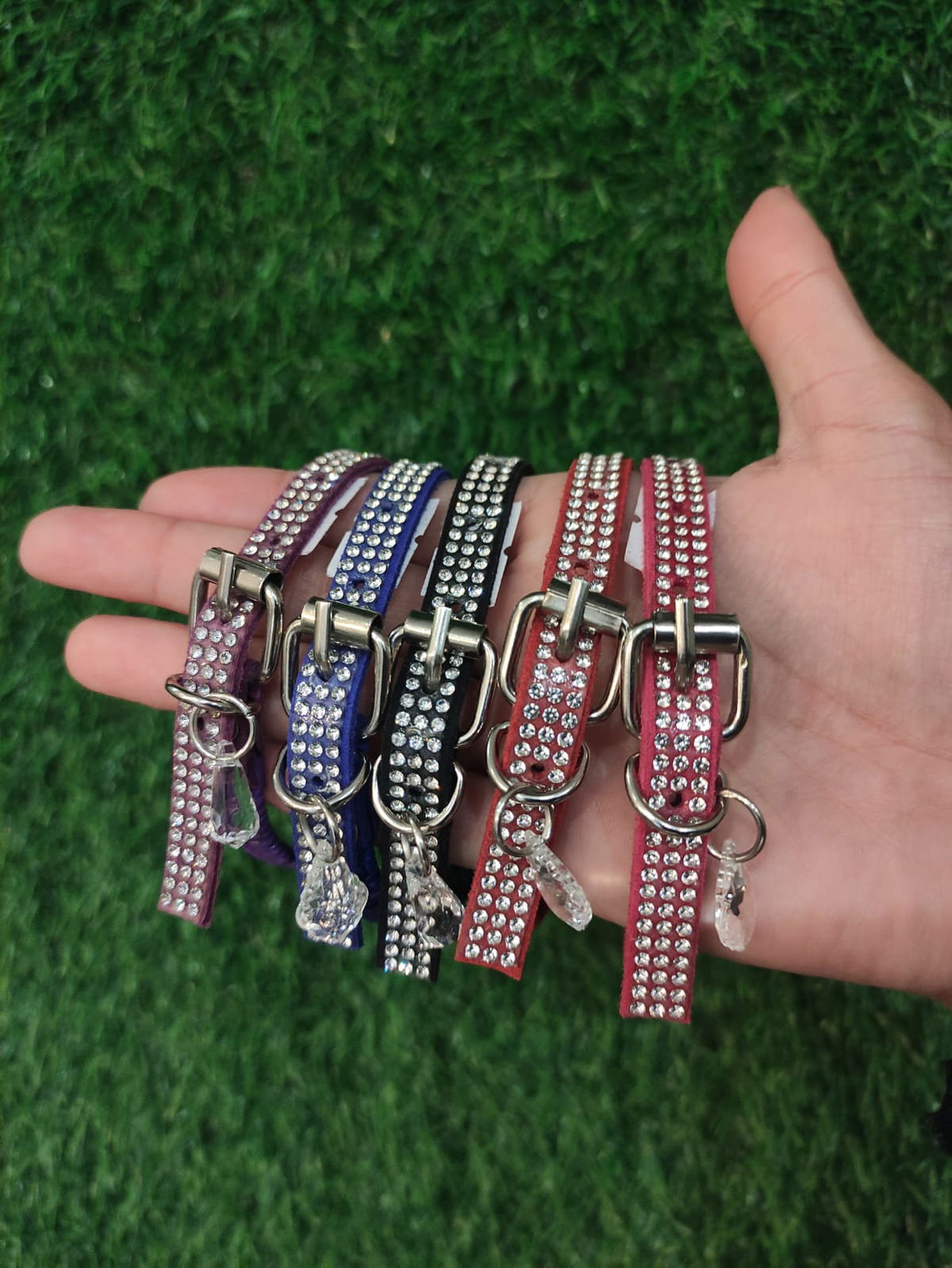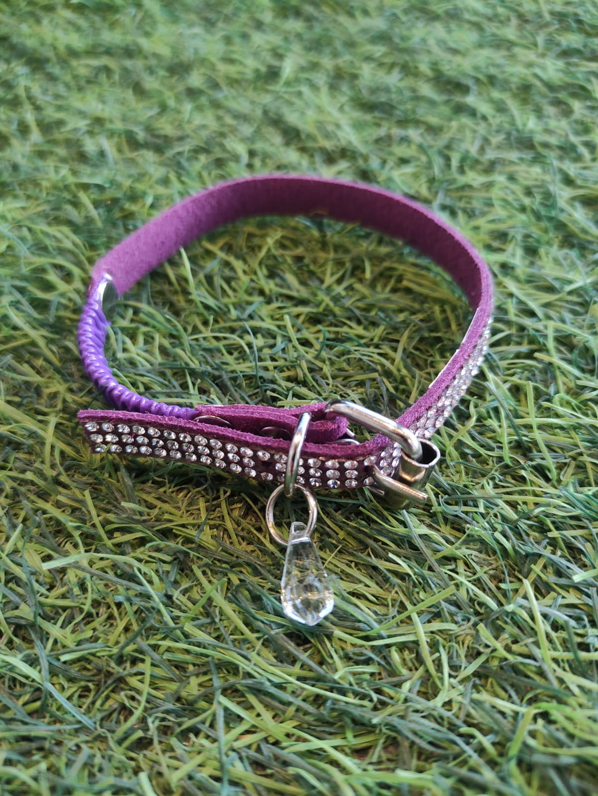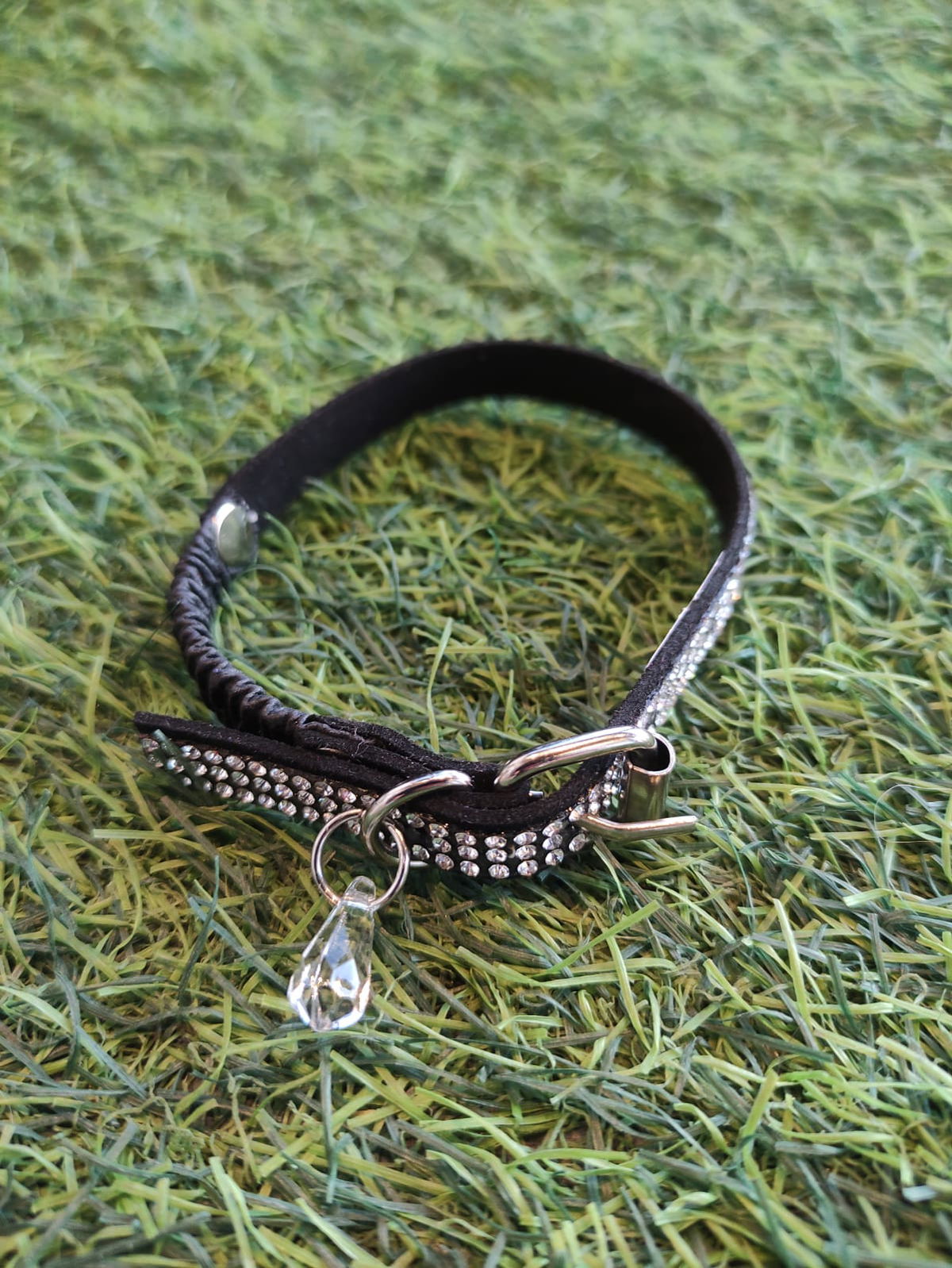 Confeccionados en gamuza con strass blanco, se extiende hasta 25 cm de circunferencia de cuello.