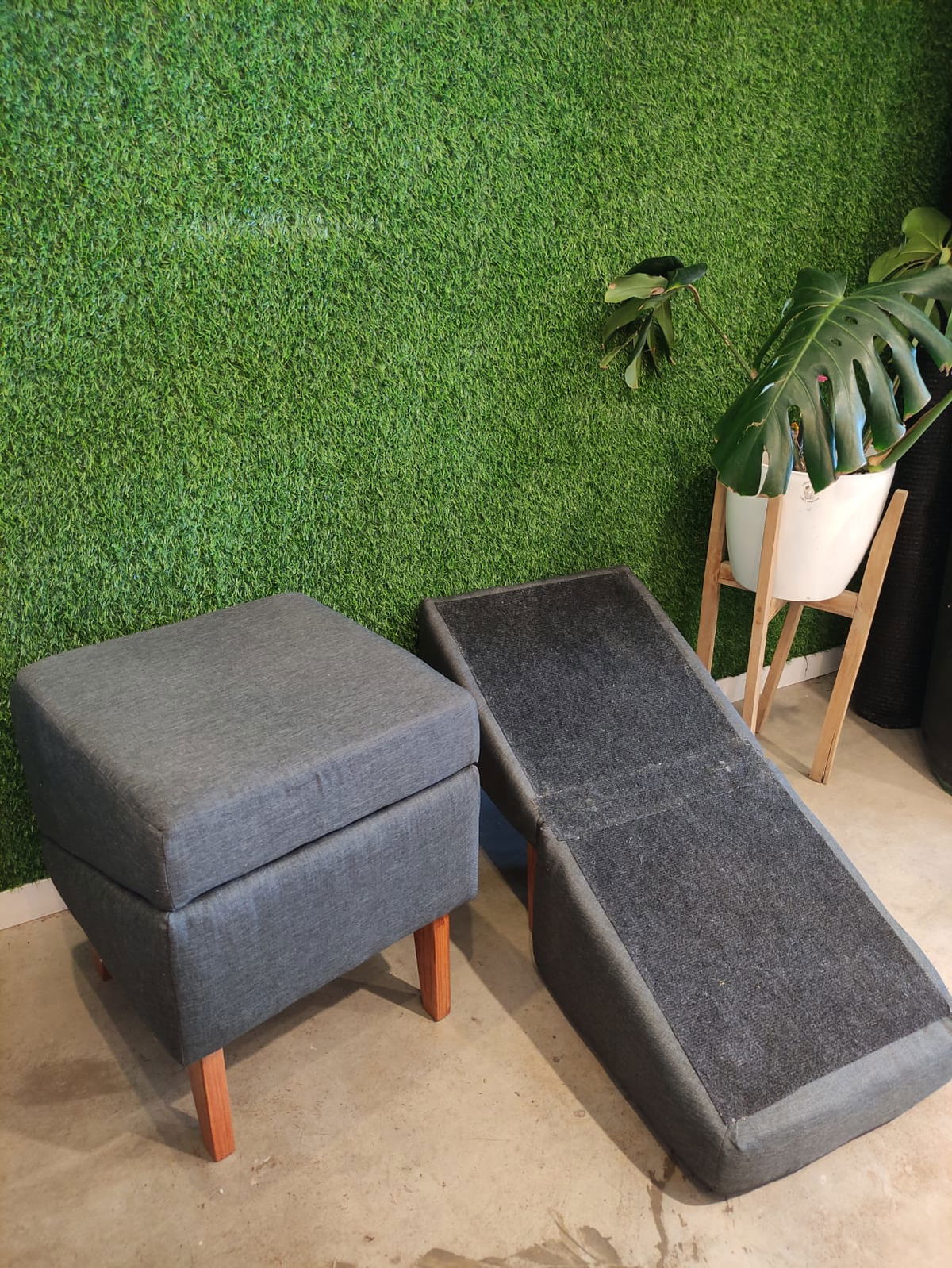 Este puff es ideal para vos y tu mascota. Usalo como asiento confortable o como rampa para que tu perro o gato suba al sillon o la cama sin esfuerzo. Disponible en color gris oscuro, realizado en tela de lino antidesgarro, materiales resistentes que tu mascota va a amar!