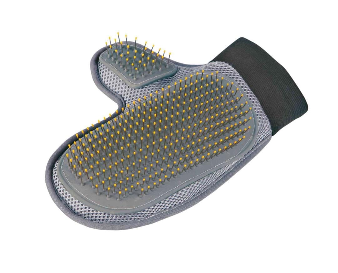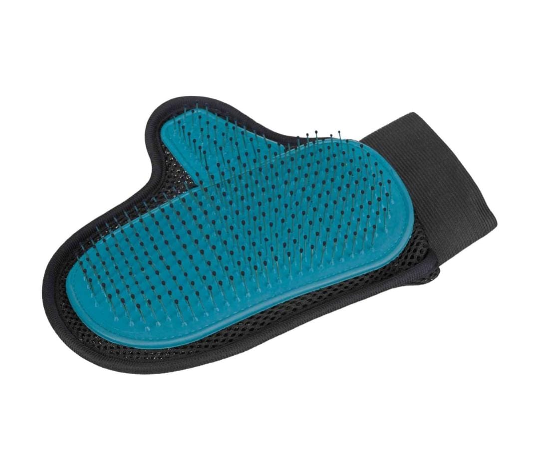 Es el accesorio perfecto para mantener a tu mascota con un pelaje suave y brillante. Con cerdas metalicas con puntas protectoras, este guante es ideal para acariciar a tu mascota mientras elimina el pelo suelto y la suciedad. Ademas, el guante es facil de limpiar y es lavable a maquina. lo que lo hace conveniente y duradero.