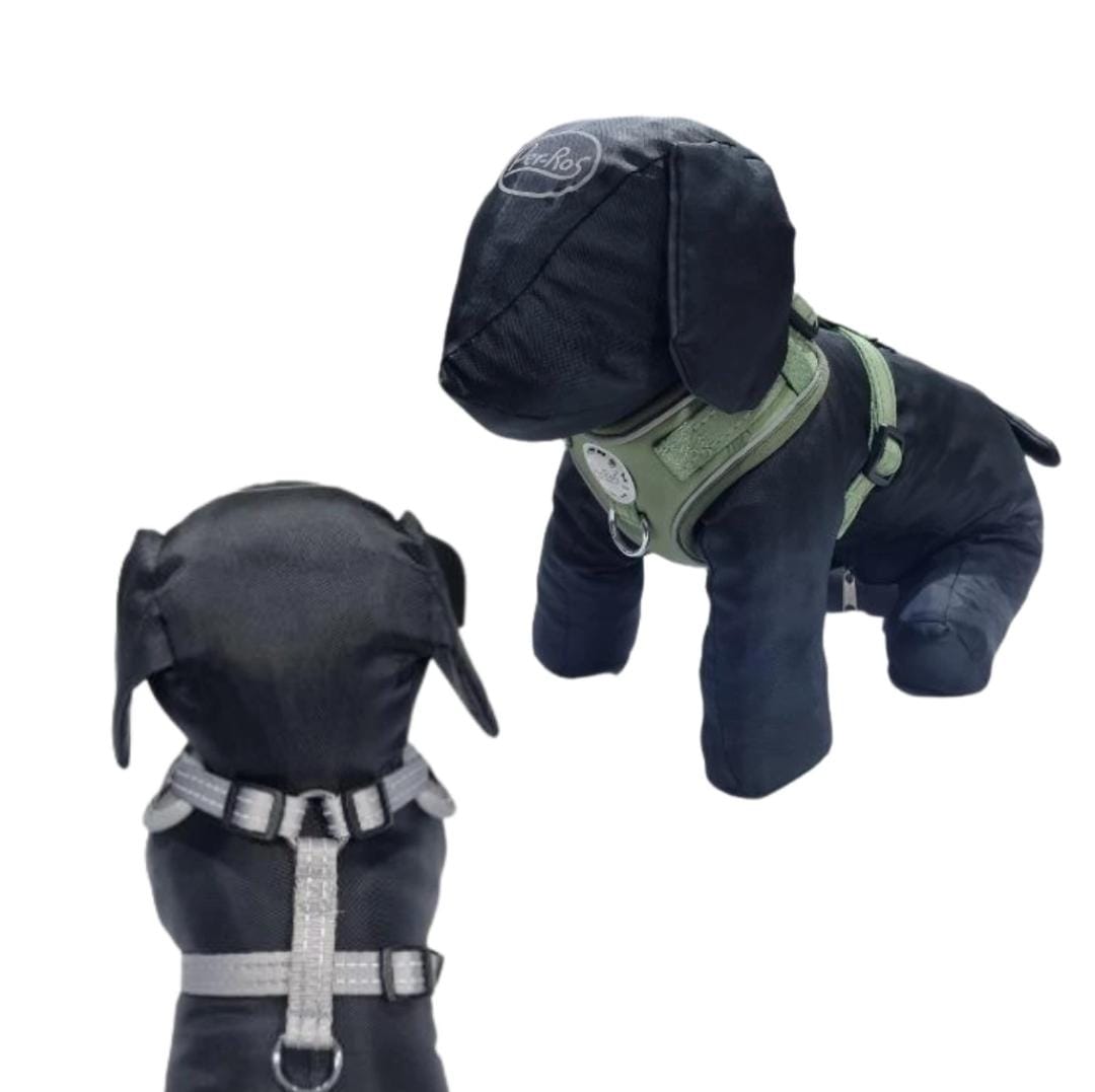 El arnes cuenta con dos agarres reforzados para mayor seguridad y control y esta equipado con costuras reforzadas y material reflectivo para paseos mas seguros de dia y de noche.