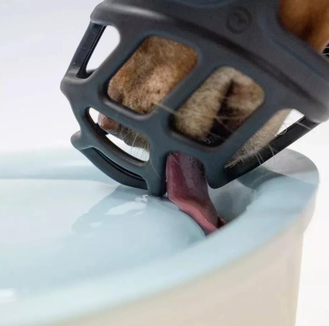 Ayuda a controlar las mordidas, los ladridos y las masticaciones, a la vez que permite que su mascota beba, jadee e incluso acepte golosinas.