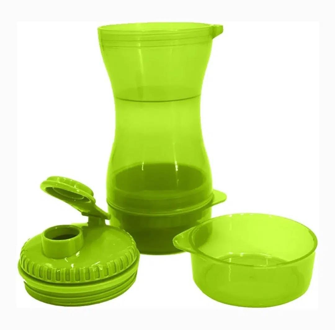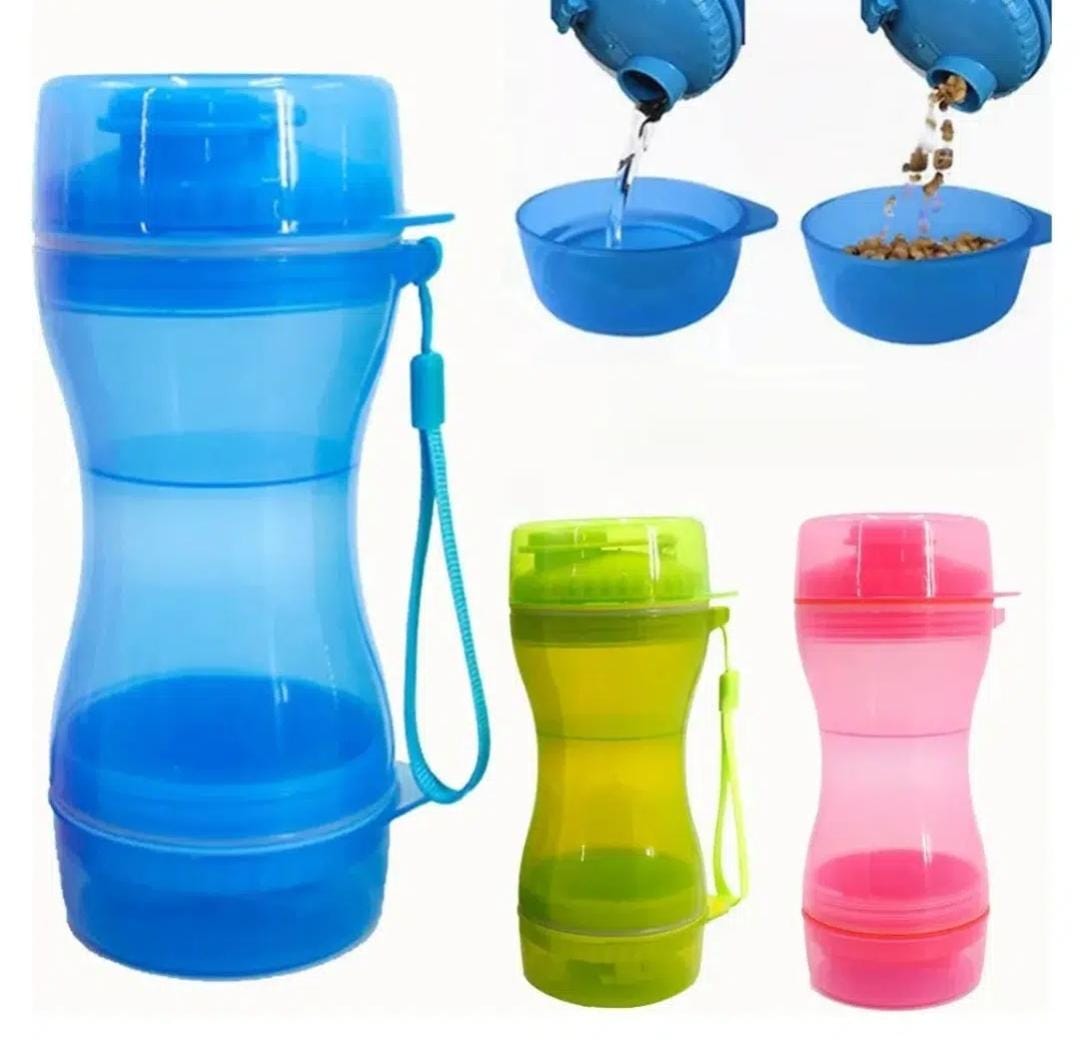 Es una novedosa y practica botella. Es ideal para viajes o paseos ya que te permite transportar alimento y agua para tu mascota. Con la BOTELLA DOBLE USO no necesitas llevar envases extras, la parte inferior es un recipiente para agua y la parte superior es un contenedor de alimentos.