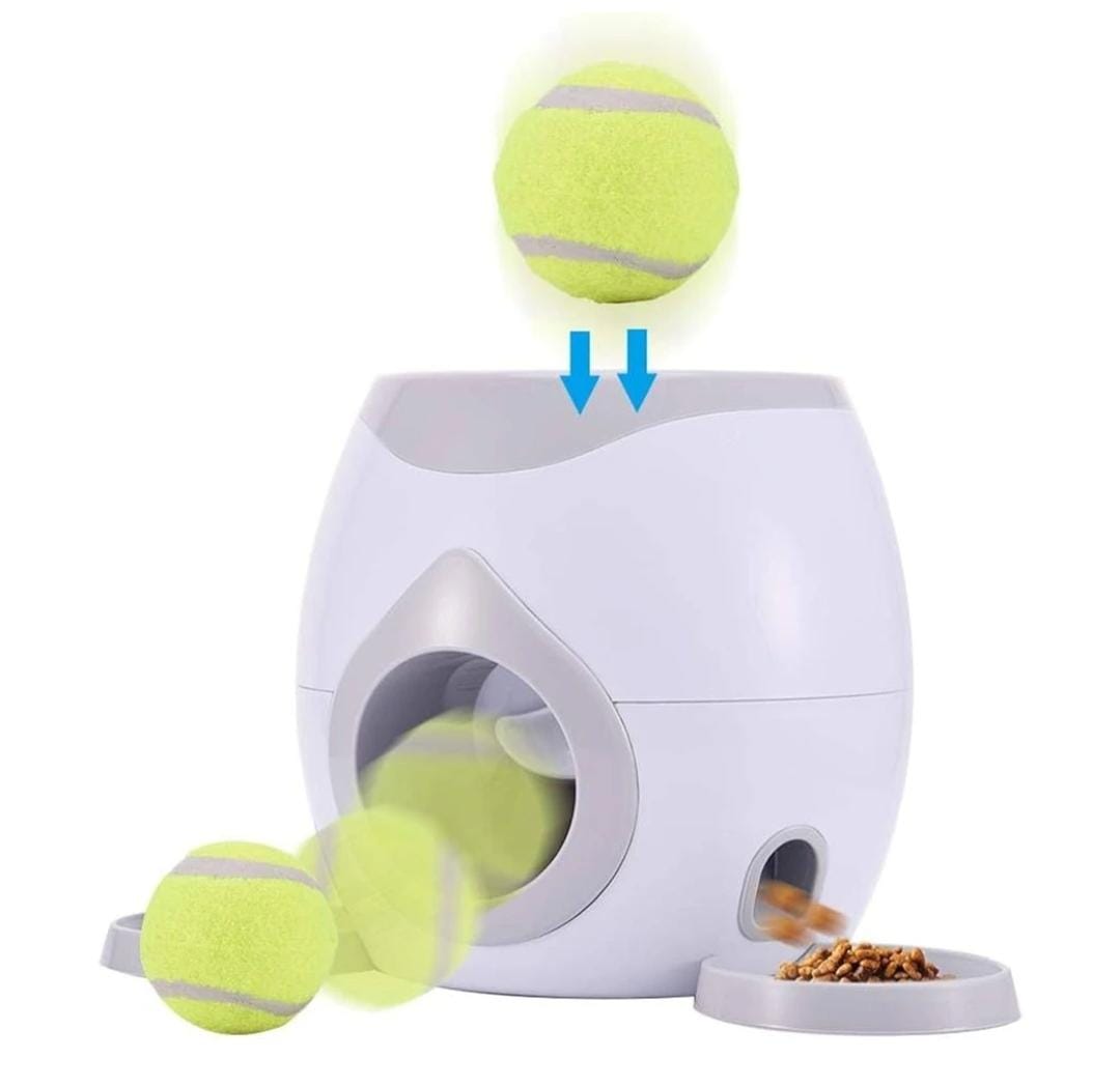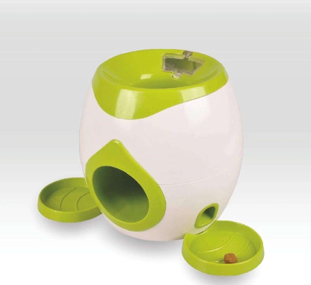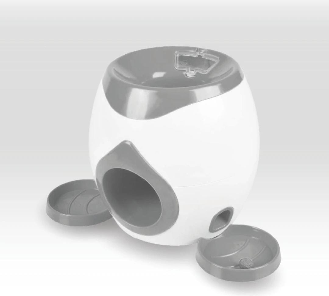 Mantiene a tu mascota entretenida sin necesidad de estar pendiente de ella. Cuando el perro deja la pelota, cae la comida a modo de recompensa, es de facil limpieza y tiene una capacidad de 200 gramos.
