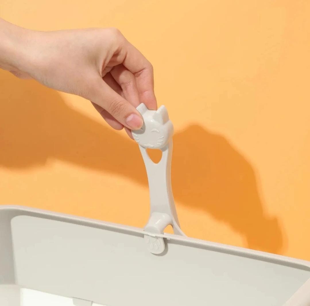 Se trata de una pala perfecta para recoger mas cantidad de arena en cada pasada, reduciendo el tiempo de limpieza. El diseño ergonomico del mango en forma de gatito, no solo es comodo de sostener sino tambien simpatico para cualquier amante de los gatos. Esta fabricada con plastico duradero y de alta calidad, capaz de soportar el uso diario sin desgastarse. Las ranuras de la pala estan diseñadas para tamizar la arena, permitiendo que solo los desechos solidos sean retirados.