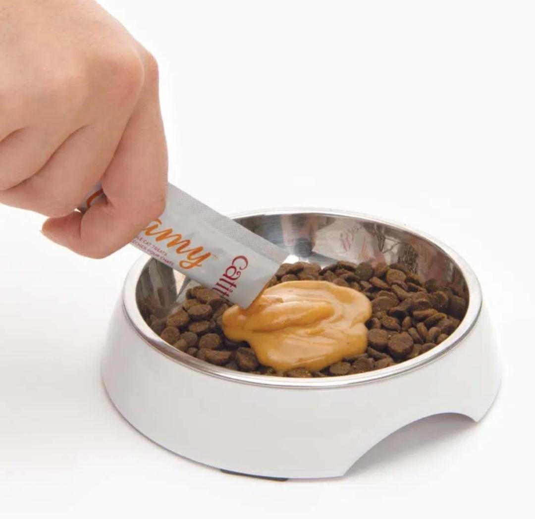 Es un snack nutritivo, cremoso e hidratante que añade variedad a la dieta de tu gato. Es esencial mantener a tu gato hidratado para asegurar a una funcion adecuada de los riñones y una buena digestion.