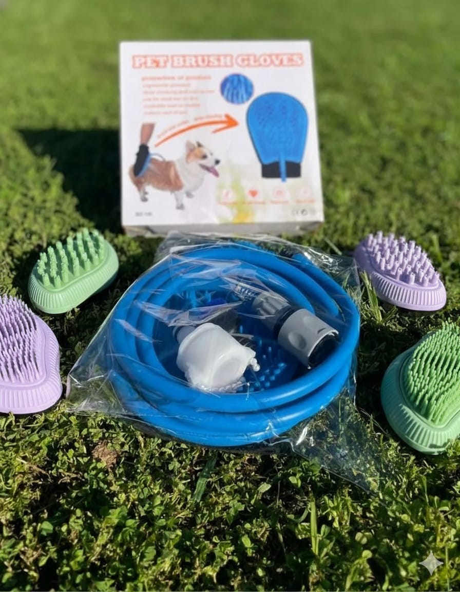 Guante de silicona con manguera para baño de mascotas!